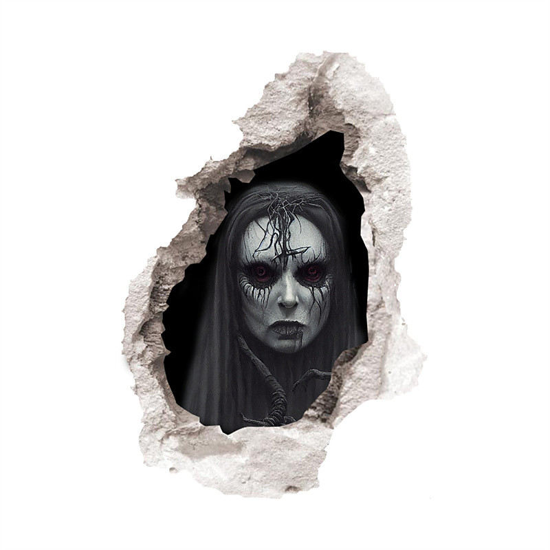 3D Halloween Ghost Scratching the Cracked Floor Scary Wall Sticker Floor Decals