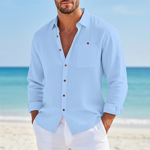Per uomo Camicia di lino Camicia Estiva Abbigliamento da spiaggia Camicia casual Camicia con Bottoni Camicie sbottonate Semplice Vacanza Casuale Nero Bianco Rosa Blu marino Manica Lunga Bavero