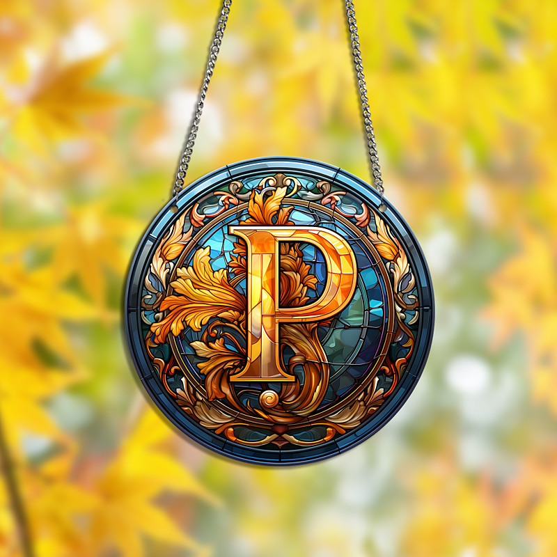 Alphabet Stained Window Hanging Suncatcher For Windows Panels Sun Catcher Autumn Ornament Decoration Alphabet Memorial Gift For Friend, Christmas Xmas Gift
