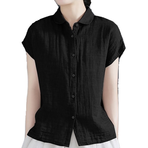Camicie in Lino Falso per Donna con Bottoni di Colore Solido Stile alla Moda di Base Casual Maniche Corte Colletto Camicia Top Regolari Giornalieri Nero Bianco Rosa Verde Azzurro Chiaro Estate