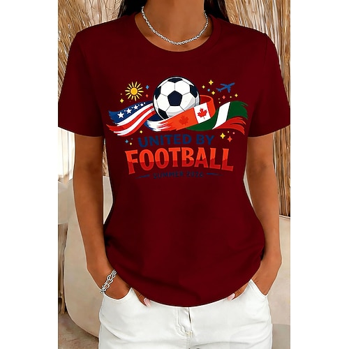 Per donna Maglietta Stampato Grafico Squadra di calcio Elegante Classico Casual Manica Corta Girocollo Top Regolari Quotidiano Blu Nero Bianco Rosso Verde Estate Primavera