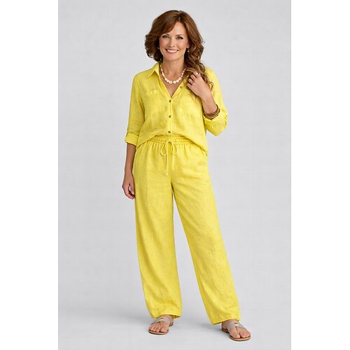 Per donna Set di biancheria in cotone Set di Pantaloni Bolero Top Manica Lunga Scollo a V Semplice Coulisse Moda Streetwear Quotidiano All'aperto Spiaggia Nero Bianco Giallo Estate Vestibilità comoda
