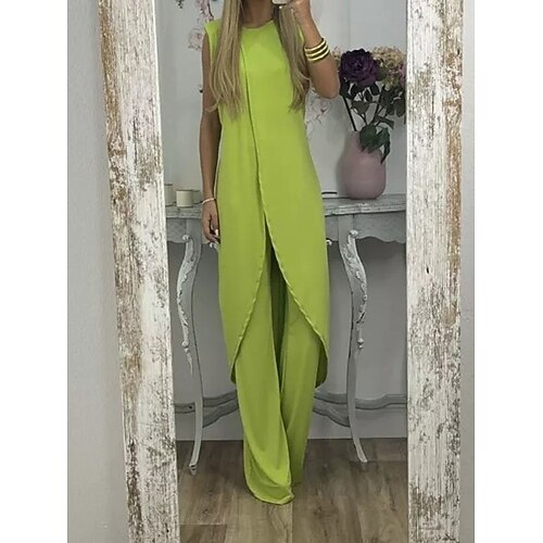 Per donna Set di Pantaloni Senza Maniche Girocollo Semplice Arricciato Patchwork Elegante Moda Streetwear Casuale Quotidiano All'aperto Nero Verde chiaro Rosso Estate Vestibilità comoda