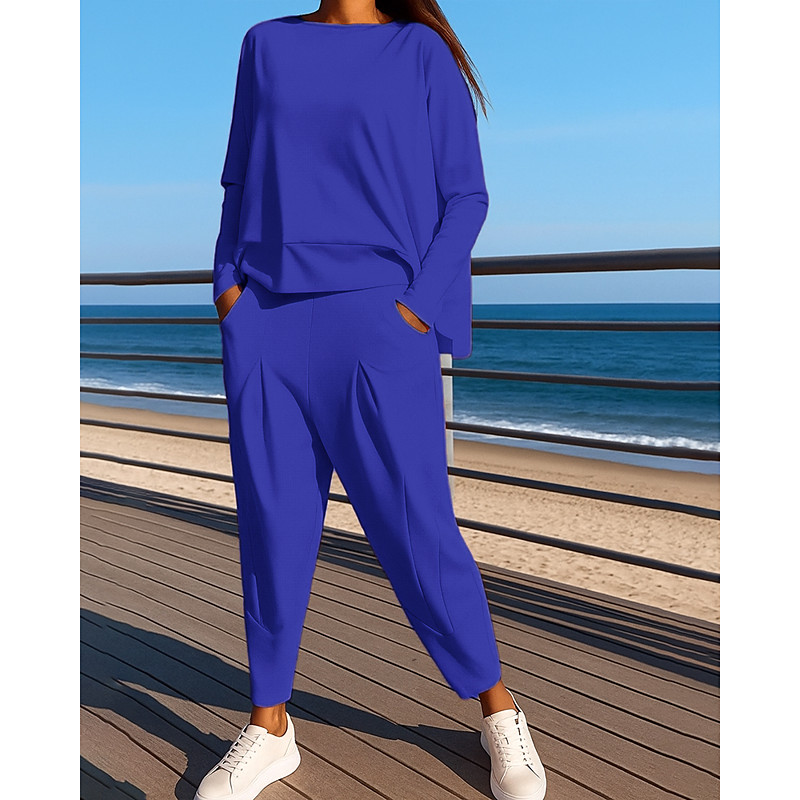 Women's Fashion Streetwear Shirt Linen-Inspired Sets Two Piece Sets Long Sleeve V Neck Solid Color Daily Wear Date Black White Blue Summer Regular Fit