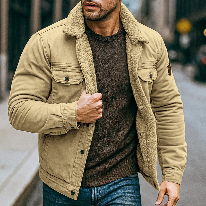 Men's Fleece Jacket Cargo Jacket Chore Jacket Formal Home Windbreaker Durable Pocket Fleece Collar Fall Winter Solid Color Active Vintage Collar Regular Navy Blue Khaki Army Green Jacket
