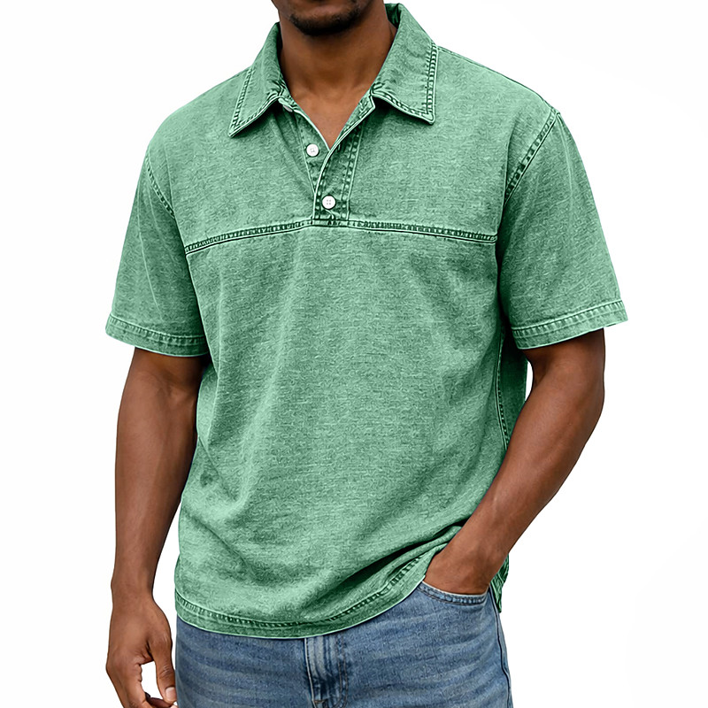 Men's Polo Casual Vacation Classic Short Sleeve Fashion Basic Solid Color Plain Vintage Style Washed Spring Winter Spring Fall Regular Fit Light Green Pink Purple Khaki Dark Blue Light Blue Polo