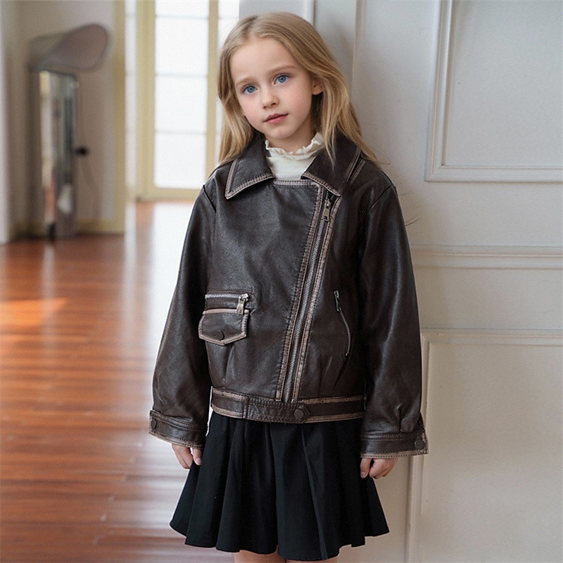 Kids Girls' Black Leather Jacket Jacket Solid Color Fashion Zipper Pocket Outdoor Coat Outerwear 4 years Fall Black White Pink