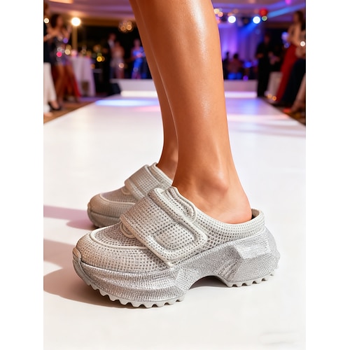 sneakers da donna con plateau e strass rossi, scarpe da festa slip-on robuste per eventi notturni