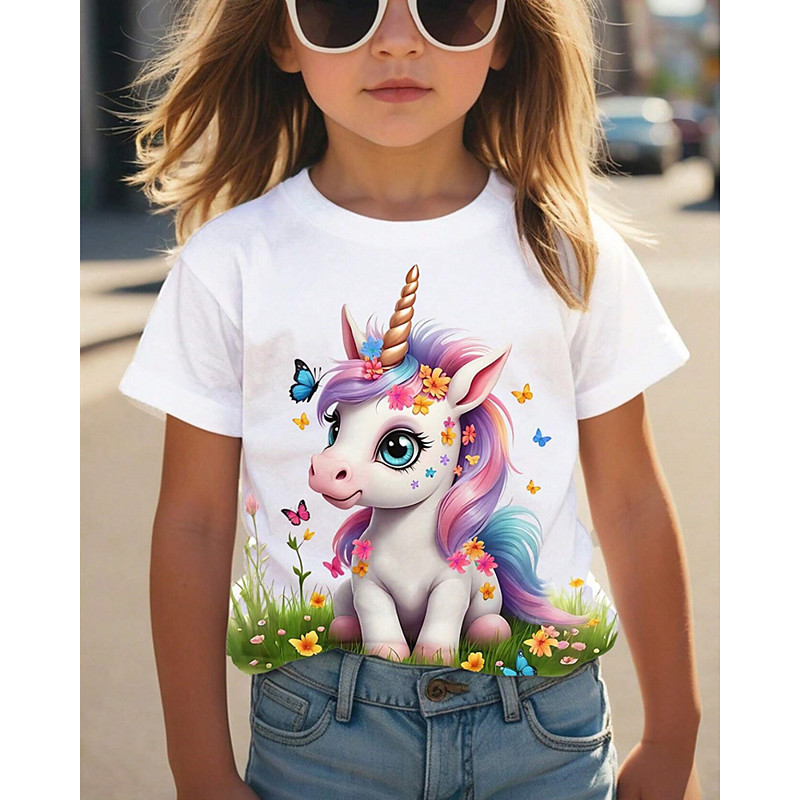 Girls' 3D Graphic Unicorn T shirt Tee Short Sleeve Summer Spring Fashion Basic Kids 4-12 Years Crew Neck Outdoor Casual Daily Regular Fit