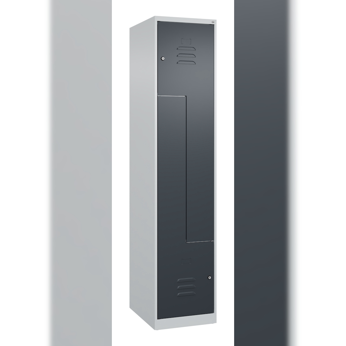 C+P Z-Spind Classic PLUS bodenstehend, 2 Abteile, HxBxT 185x40x50cm, Zylinderschloss, Hellgrau/Anthrazit von PROREGAL