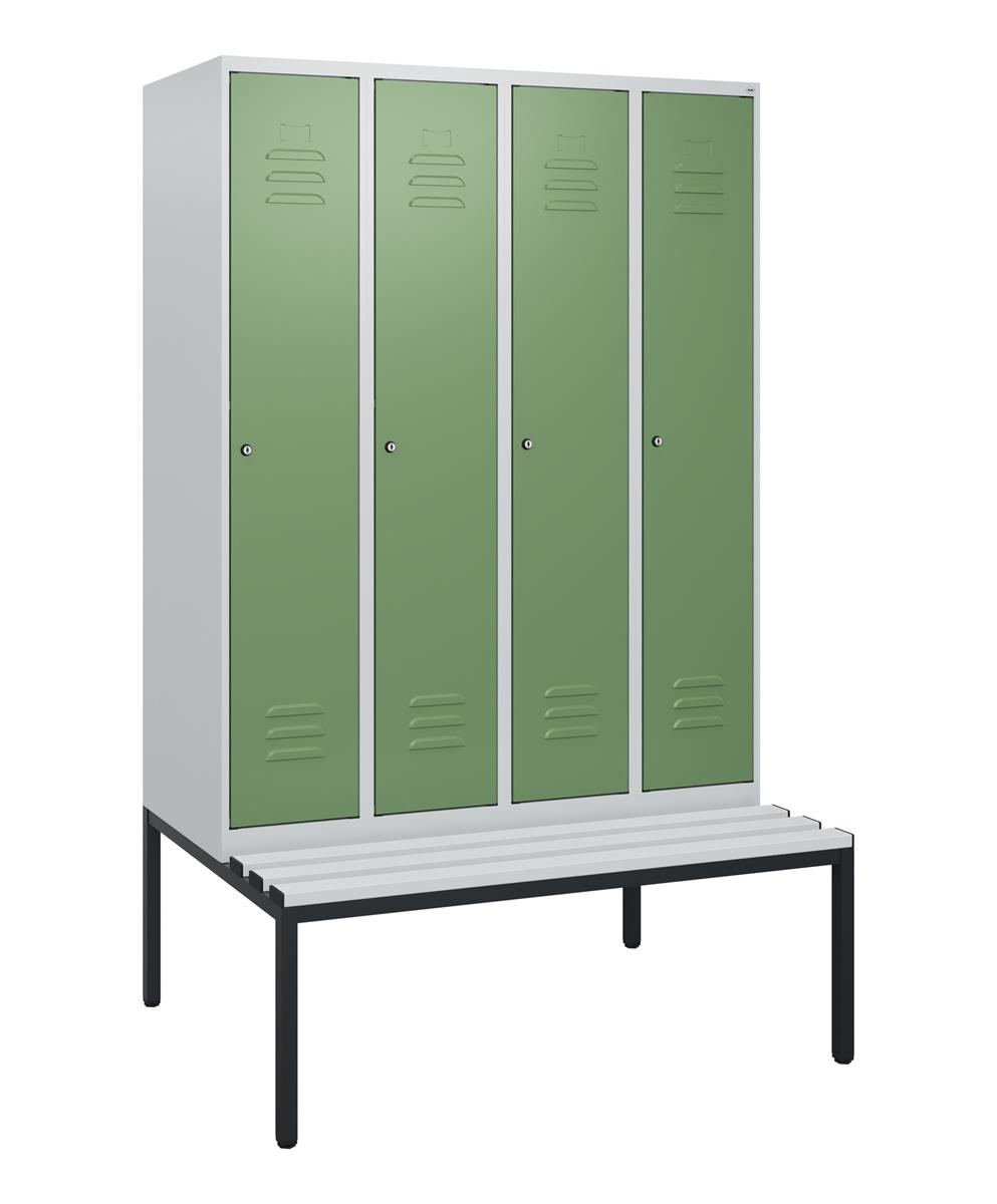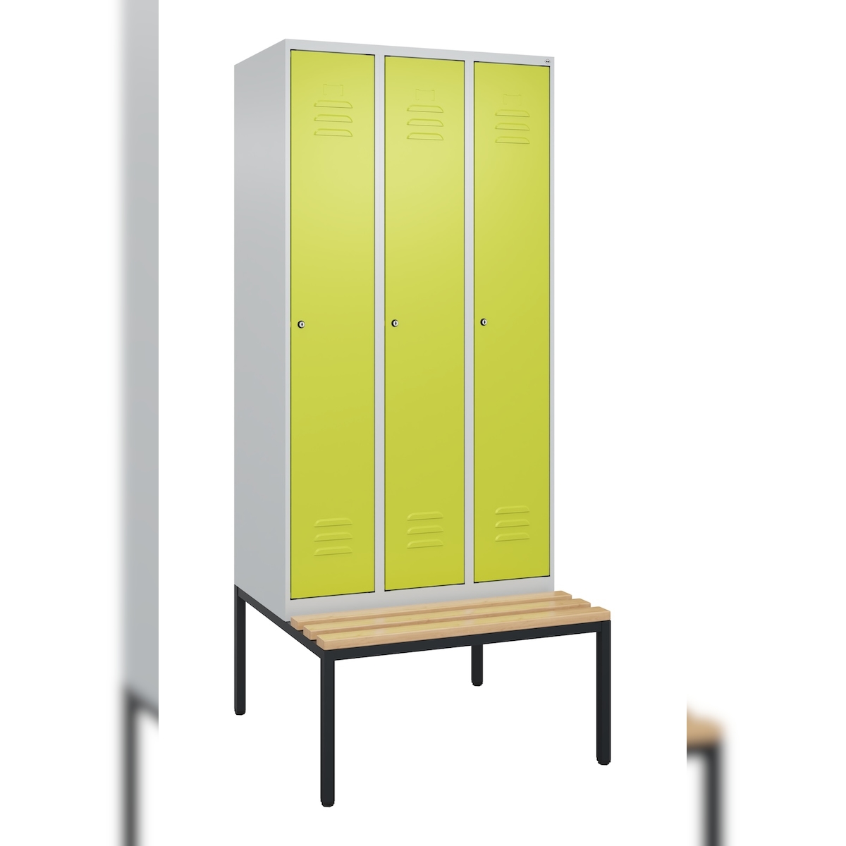 C+P Spind Classic PLUS, Buche untergebaute Sitzbank 3 Abteile, HxBxT 212x90x82cm, Zylinderschloss, Hellgrau/Clowngrün von PROREGAL