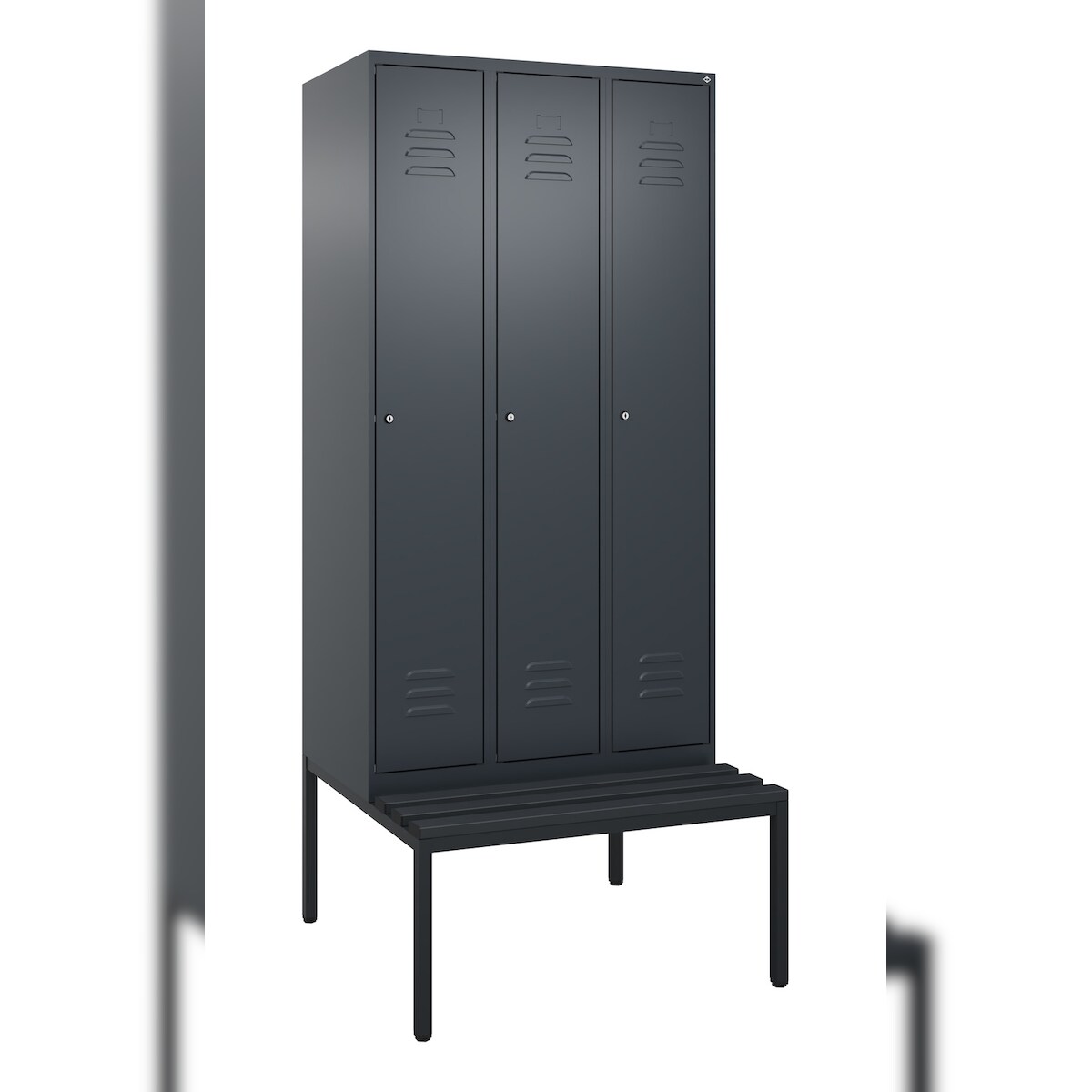 C+P Spind Classic PLUS, Kunststoff untergebaute Sitzbank, 3 Abteile, HxBxT 212x90x82cm, Zylinderschloss, Anthrazit von PROREGAL