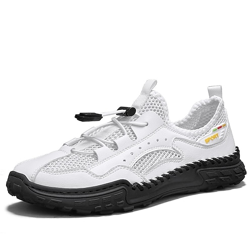 Scarpe da ginnastica da uomo bianche per attività all'aperto, con lacci, traspiranti, leggere e comode, ideali per escursionismo, viaggi, campeggio, passeggiate su sentieri, avventure all'aria aperta e per uno stile sportivo casual quotidiano.