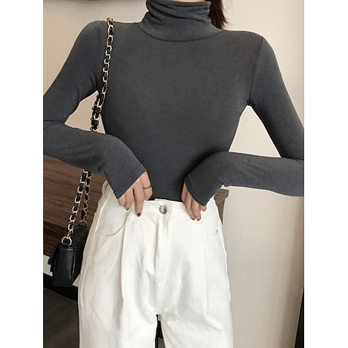 Per donna Blusa Tinta unica Elegante Casual Manica Lunga Dolcevita Top Regolari Quotidiano Arricciato Nero Bianco Rosa Vino Blu Estate Primavera Autunno