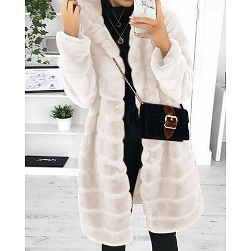 Per donna Cappotto Invernale Cappotto Antivento Caldo Bottoni Aperturaanteriore Elegante Moda Pelliccia Classico Tinta unica All'aperto Vacanza Ufficio / Carriera Streetwear Lungo Collo ripiegato