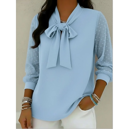Per donna Camicia Tinta unica Elegante Vintage Essenziale Manica Lunga Cravatta al collo Top Regolari Quotidiano Blu Nero Viola Estate Primavera Autunno Inverno