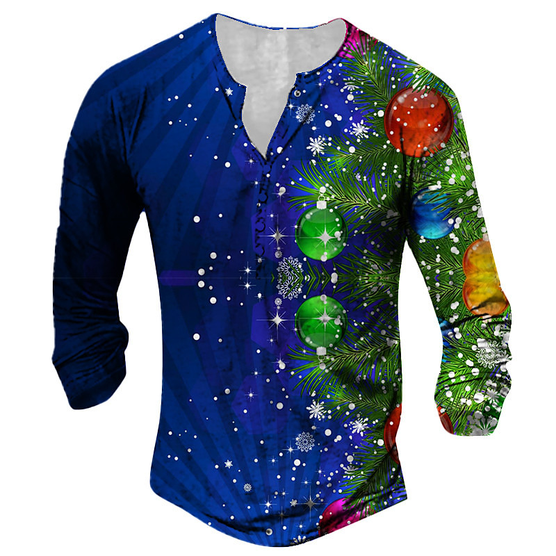 Christmas Sweater Mens Graphic Shirt Tee Henley Color Block Yellow Red Blue Purple Green 3D Print Outdoor Long Sleeve Cotton