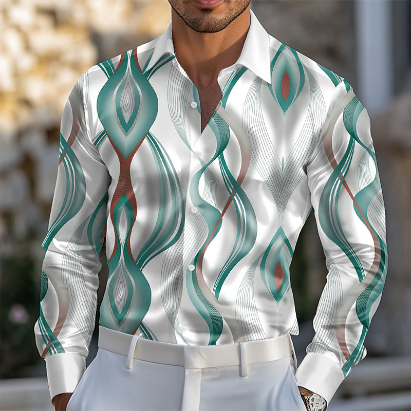 Men's Geometric Gradient Waves Satin Shirt Dress Shirt Button Up Shirt Long Sleeve Fashion Casual Vacation Holiday Summer Spring Fall Turndown Collared Shirts 3D Print Wine Blue Green Gray