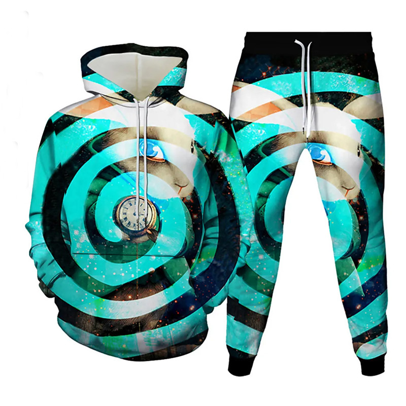 Men's Swirl 2pcs 3D Sweatshirt Sets Tracksuit Hoodie Sweatshirt Long Sleeve Long pants Hooded Casual Daily Athleisure 3D Print Spring Fall Winter Green