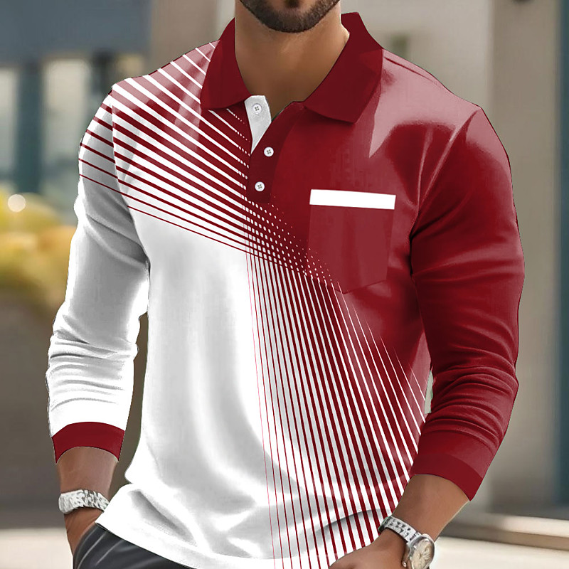 Men's Geometric Polo Long Sleeve Polo Shirts Lapel Casual Business Casual Athleisure Daily Wear Pocket 3D Print Buttons Spring Fall Black Red Blue