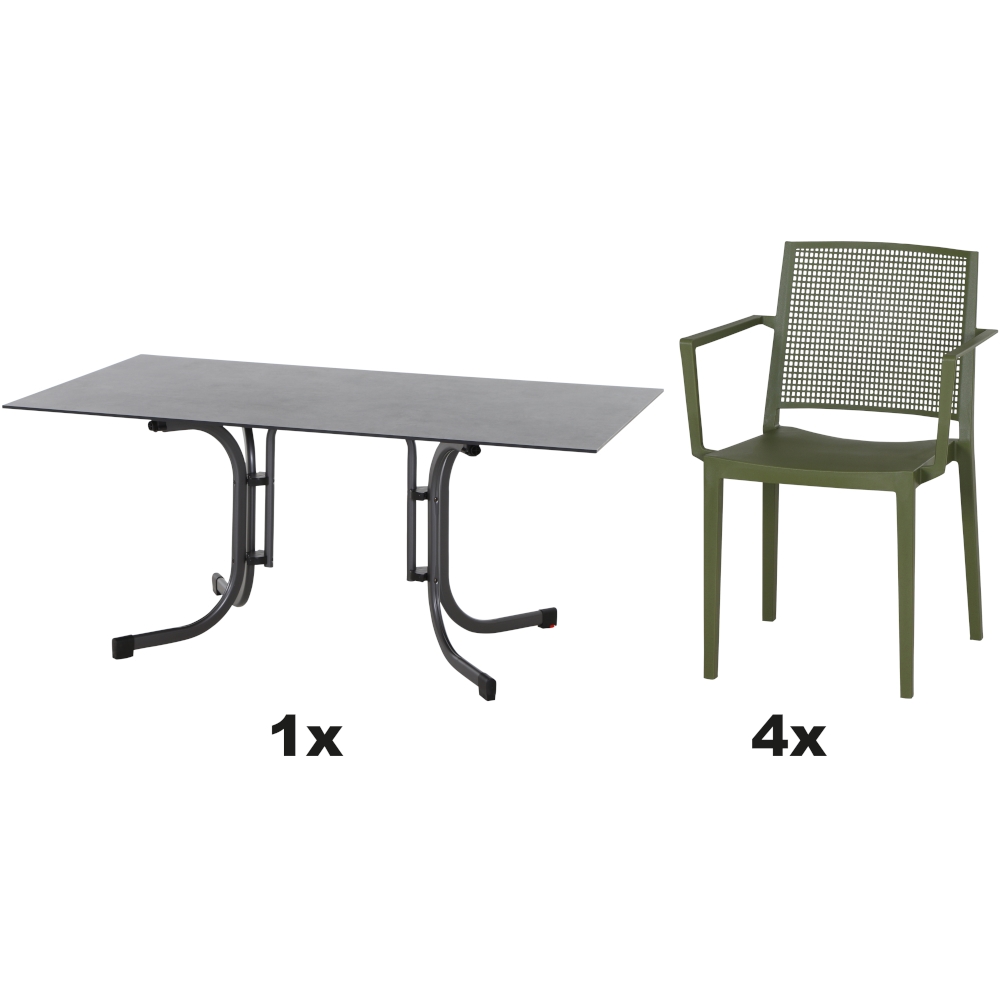 SIENA GARDEN Urban Lights Set 5teilig Square Sessel gastrotauglich olive mit Tisch Sola 160x90