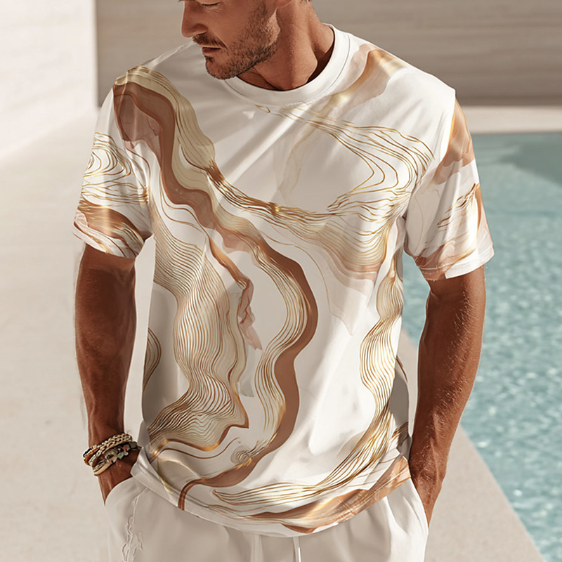 Men's Abstract Marble T Shirt Short Sleeve T shirt 3D Print Crew Neck Shirt Tropical Hawaiian Vacation Street Casual Black 1 White 1 Black Summer Spring Clothing Apparel S M L XL XXL XXXL