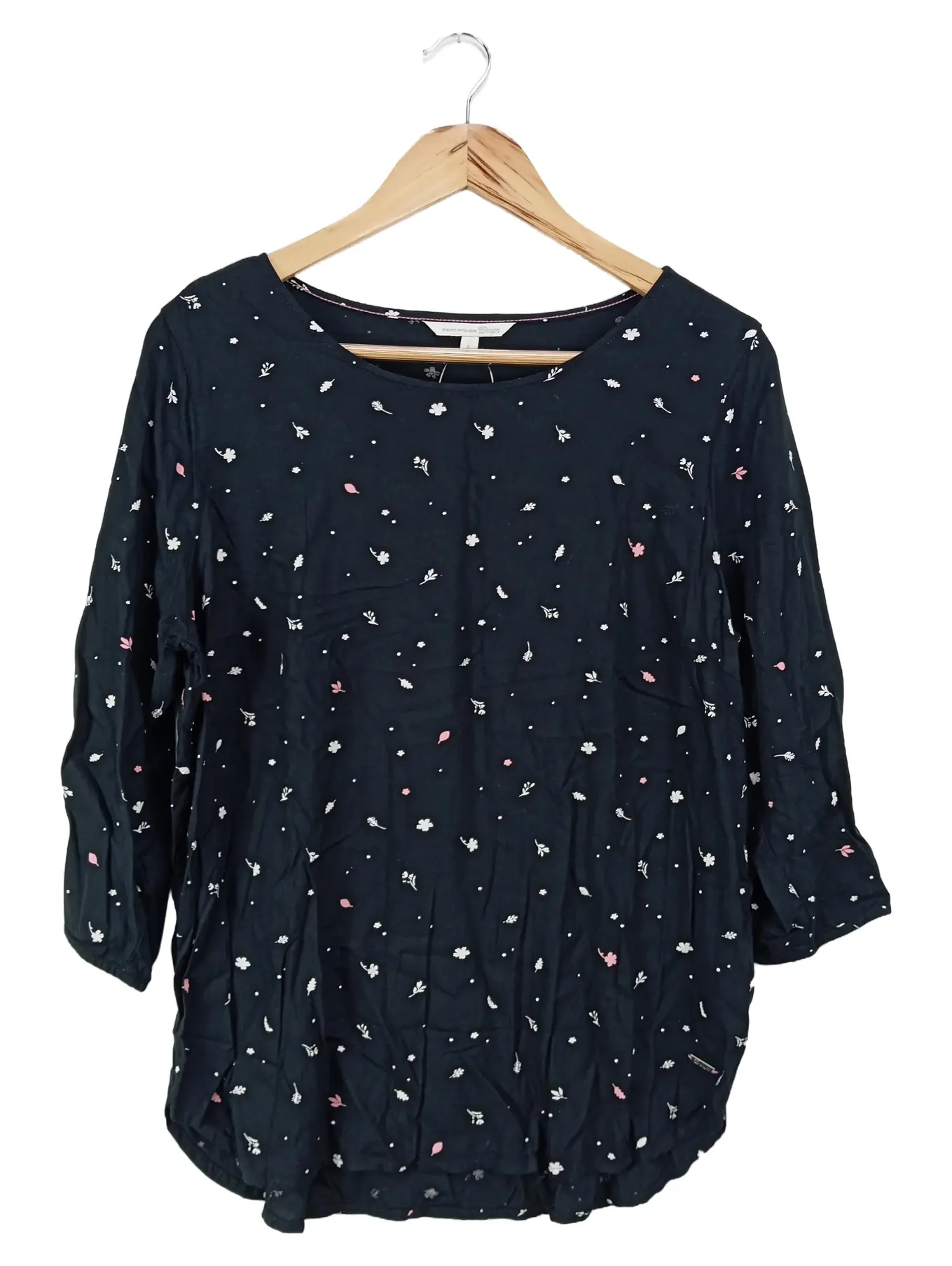 TOM TAILOR Damenbluse L Schwarz Blumenmuster 3/4-Arm
