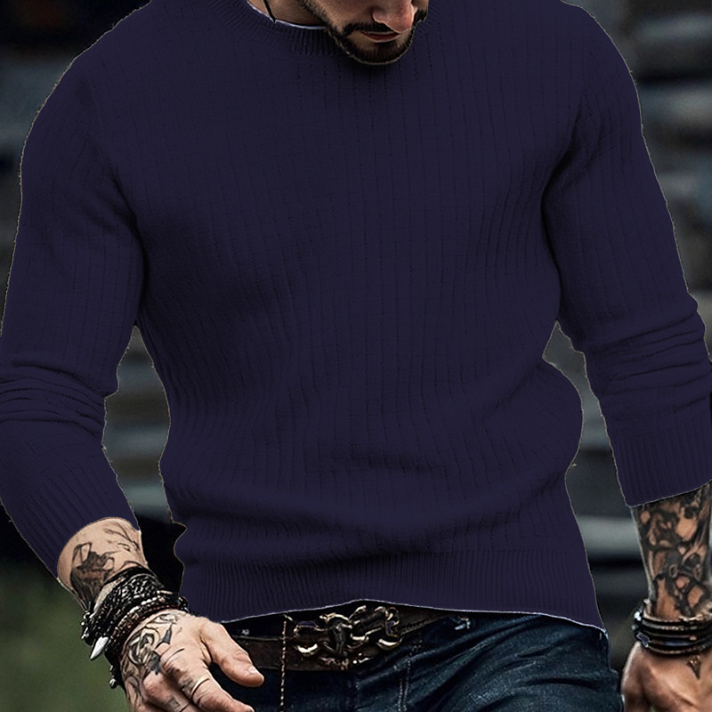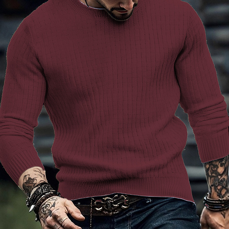 Men's Pullover Sweater Jumper Knit Sweater Ribbed Knit Regular Tops Knitted Plain Crew Neck Fashion Basic Vacation Daily Wear Clothing Apparel Fall Winter Wine Black S M L