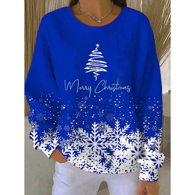 Christmas Women's Pullover Graphic Warm Classic Casual Long Sleeve Crew Neck Regular Tops Home Street Dailywear Print Red Blue Purple Green Fall Winter