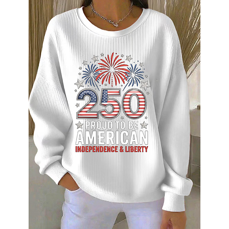 Women's Pullover Graphic Letter Warm Classic Casual Long Sleeve Crew Neck Regular Tops Casual Home Street Print Blue Black White Red Spring Fall Winter