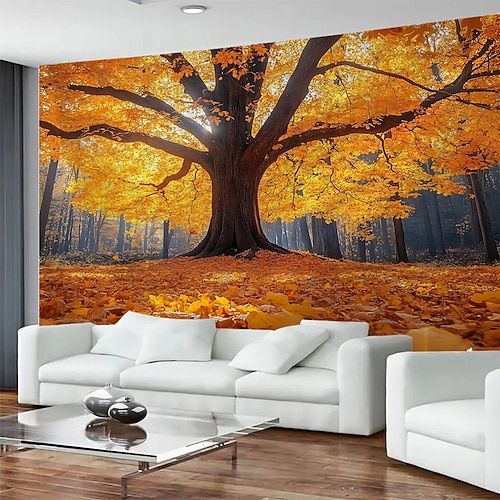 Herbstgelber Baum Landschaft Wandteppich Wanddekoration große malerische Wandbild Dekor Decke Vorhang Fotografie Hintergrund für Zuhause Schlafzimmer Wohnzimmer Büro Wanddekoration