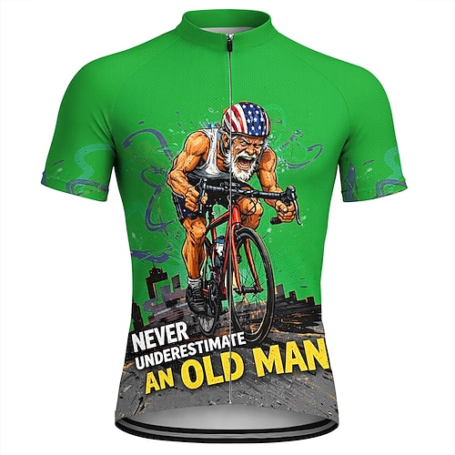 Da uomo Maglia da Ciclismo Maglia da downhill Non sottovalutare mai un vecchio con una bicicletta Manica Corta Bicicletta Maglia Maglietta con 3 tasche posteriori Resistente ai Raggi UV Asciugatura