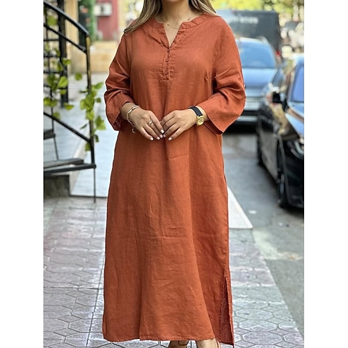 Per donna Abito maxi Abiti in cotone e lino Abito Camicia Vestito Casual Elegante Moda Moderno All'aperto Vacanza Uscire Vestibilità comoda Semplice Manica Lunga Scollo a V Bianco Giallo Rosso