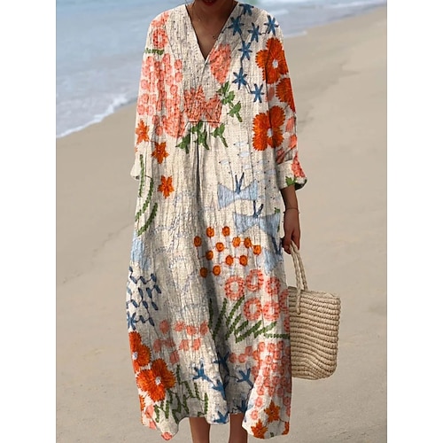 Per donna Abito maxi Abito a Tubino Vacanza Casual Uscire Vestibilità comoda Floreale Grafico Manica Lunga Scollo a V Rosa Beige Arancione chiaro Estate Primavera