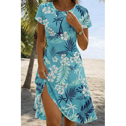 Per donna Mini Abito Vestito Estivo Vestito T-Shirt Abito a trapezio Vacanza Casual All'aperto Spiaggia Uscire Vestibilità comoda Floreale Grafico Manica Corta Girocollo Foglia Bianco e verde bianco