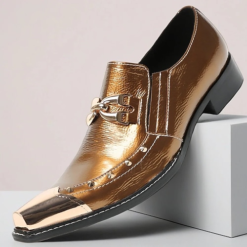 Elegante, goldfarbene Herren-Schuhe mit Doppelschnalle – stilvolle und auffällige Schuhe für besondere Anlässe, Hochzeiten und Red-Carpet-Events