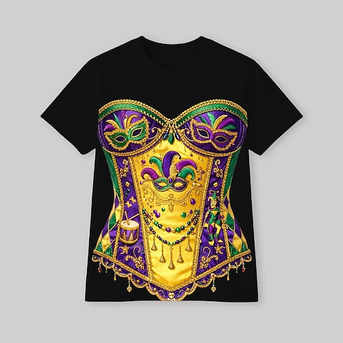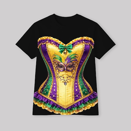 Stampa Martedì Grasso 2026 Corte T-shirt Grafico per Per donna Adulti Stampa 3D per Carnevale martedì grasso Club Festival