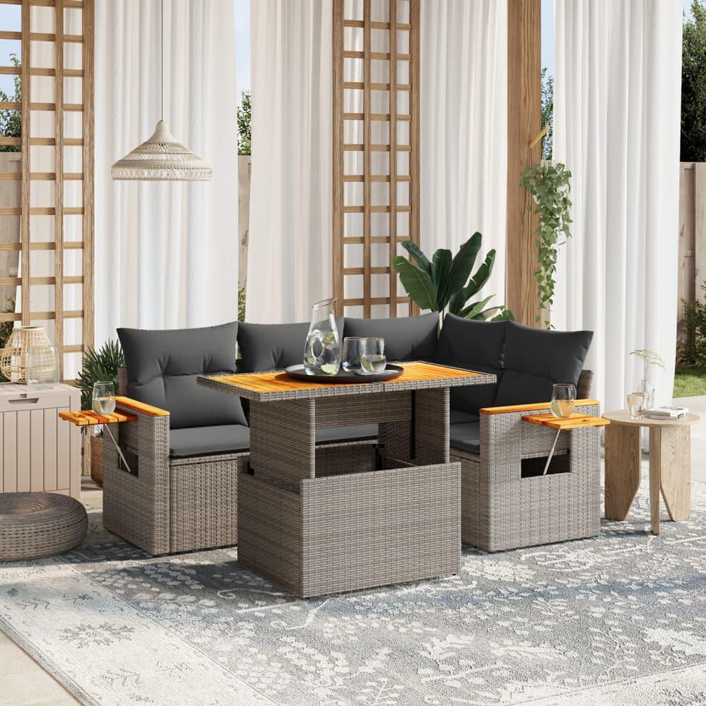 Sofasæt 5 dele med hynder polyrattan grå