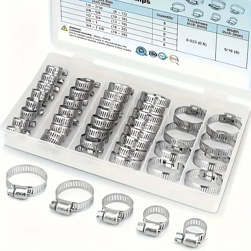 20pcs Stainless Steel Worm Gear Tube Clamps – Adjustable 1/4 to 1-1/8 (6-29mm), Durable Metal Hose Clamps for Radiator Hoses, Pipes, and Fuel Lines