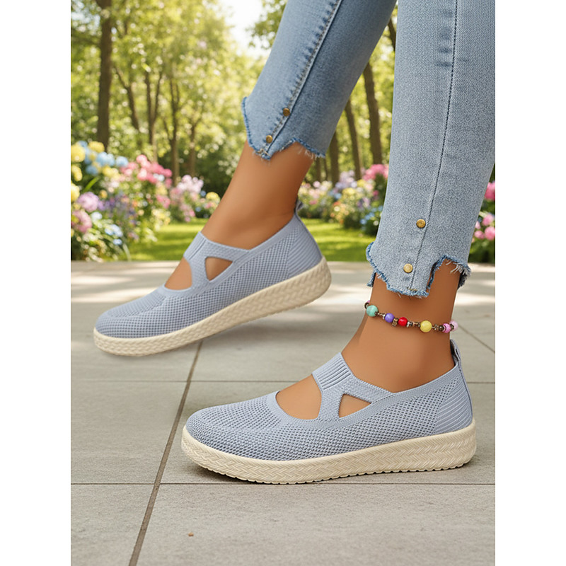 Women's Foldable Yellow Knit Flats with Breathable Design - Lightweight Travel Shoes for Casual and Outdoor Activities