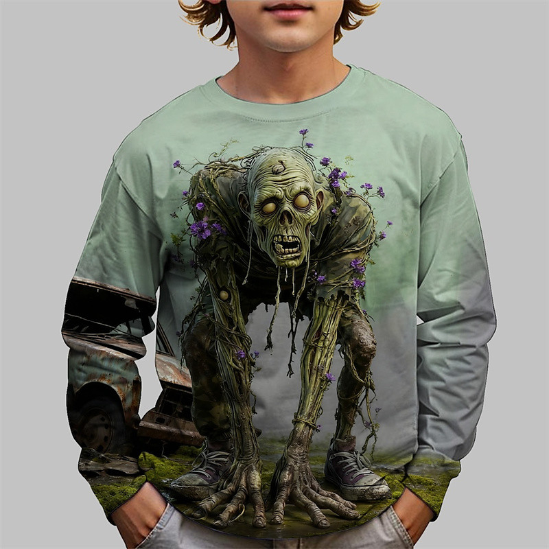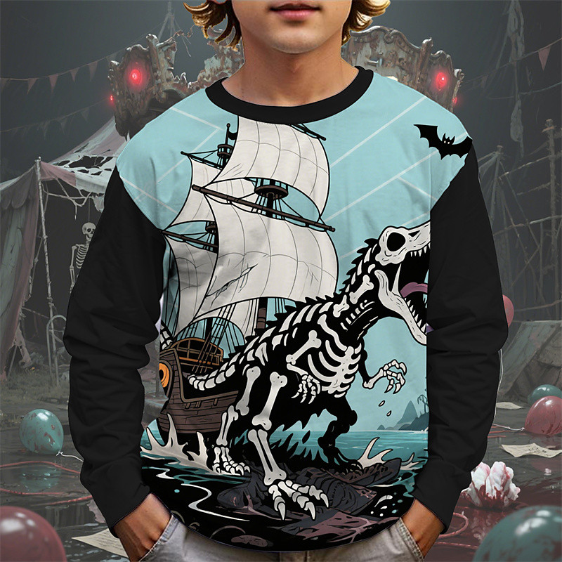 Maglietta da uomo Ghost 3D a maniche lunghe Maglietta 3D Stampata Maglietta a Collo Rotondo Moda Esagerato Street Casual Quotidiano Nero Estate Primavera Autunno Abbigliamento S M L XL XXL XXXL