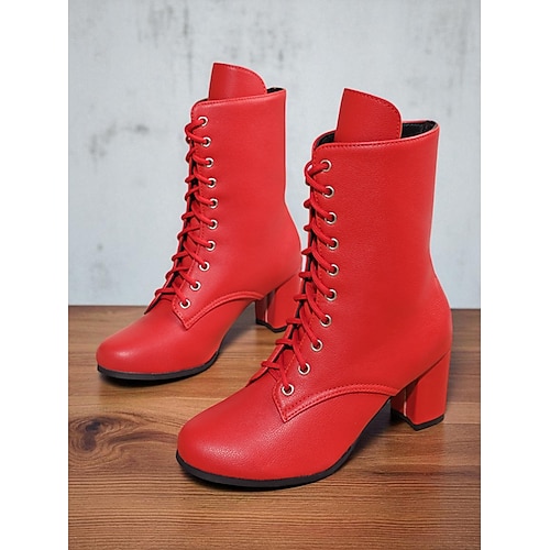 Stivaletti da donna in similpelle con lacci in stile vintage e tacco a blocco, perfetti per outfit casual e retrò.
