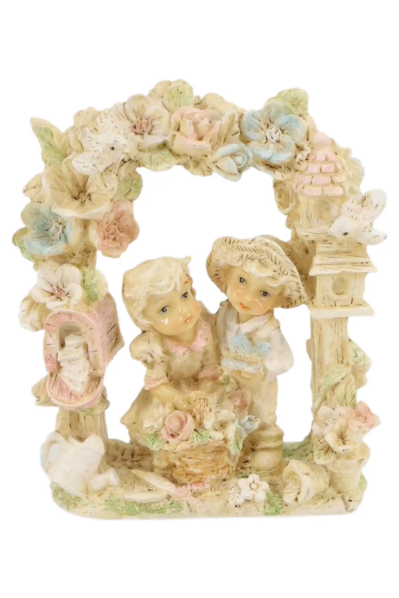 Vintage Reliefbild Kinder Blumen Keramik Deko 13x10cm Sammlerstück