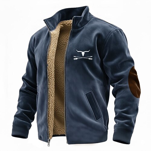 Per uomo Bandiera Americana Pile Giacca di pelle Felpa Moda Vintage Retrò Collo alla coreana Con cerniera All'aperto Vacanza Regalo Uscire Blu Nero Marrone Cachi Verde militare Tasca Cerniera frontale