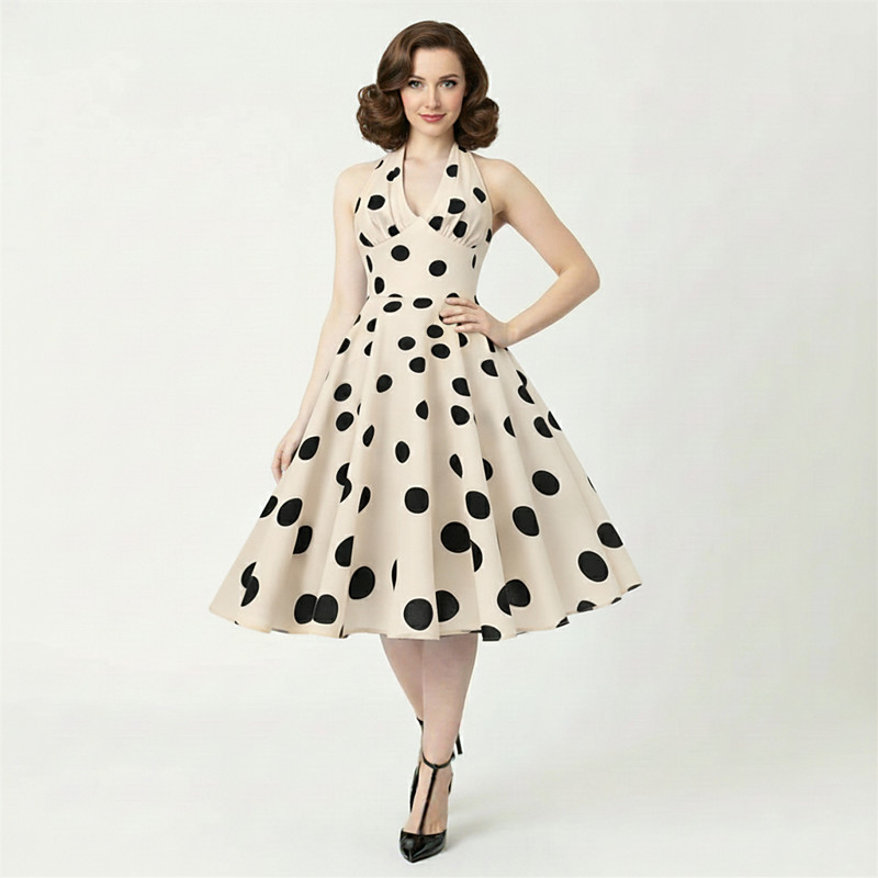 Retro Vintage 1950s Hepburn Midi Dress A Line Dress Flare Dress Polka dots Fit Flare Fancy Dress Women's Carnival Valentine's Day Casual Homecoming Retro Theme Party Adults' Dress Summer Spring