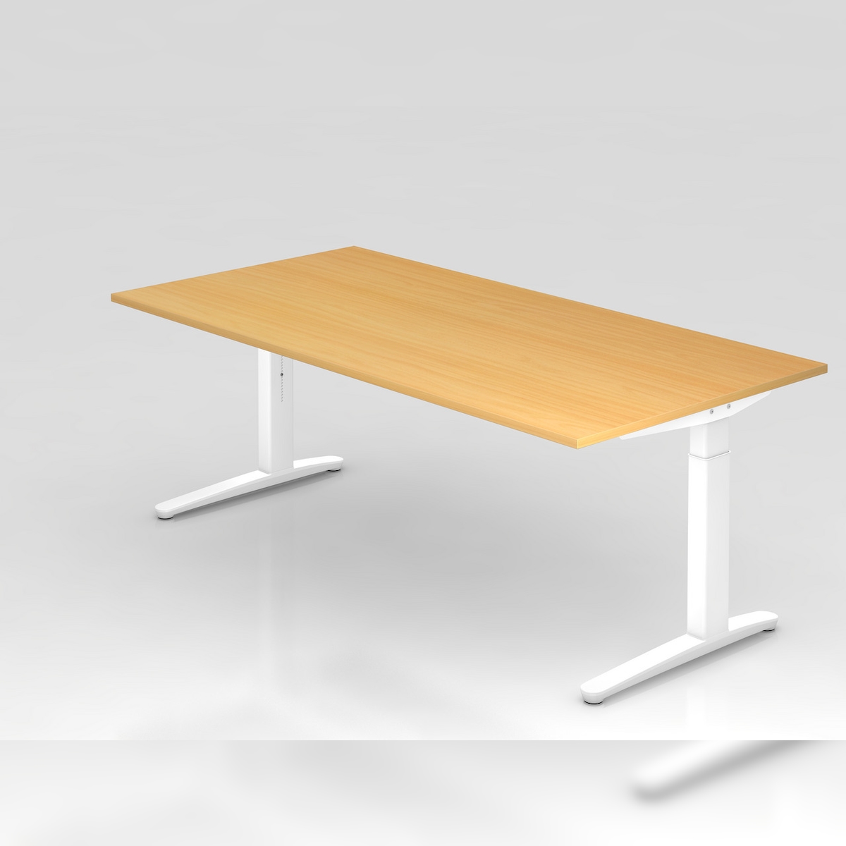PROREGAL Schreibtisch Mika | Buche | Weißes Gestell | BxT 200x100cm | Arbeitshöhe 65-85cm | höhenjustierbar, 1cm Raster | C-Fuß-Gestell