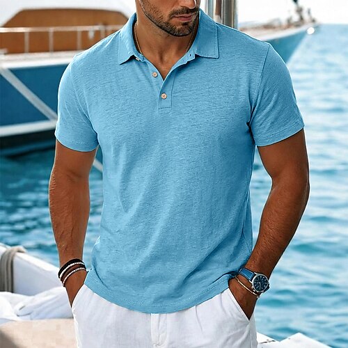 polo da uomo in lino casual vacanza classica manica corta vacanza moda tinta unita testurizzata bottoni estate primavera vestibilità regolare blu lago nero bianco verde chiaro rosa viola