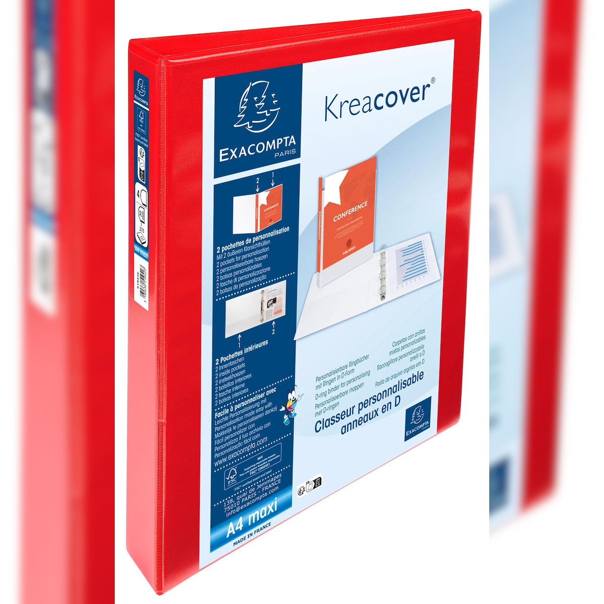 Exacompta 51942RE 10x Ringbuch aus PP 1,9mm, 4 Ringe 30mm, Rücken 47mm, 2 äußere Klarsichthüllen, 32x27,7cm für DIN A4 MAXI - Kreacover - Rot