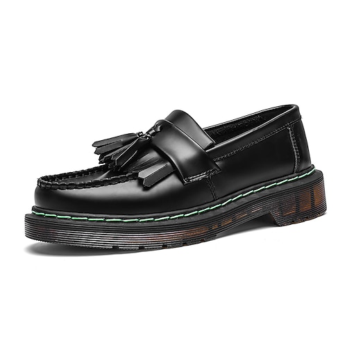 mocassini da uomo in similpelle nera con dettaglio nappina e suola trasparente - calzature alla moda per occasioni semi-formali e casual
