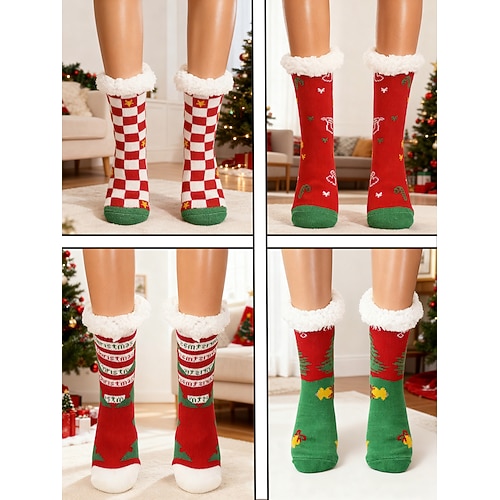Set di 4 paia di calzini natalizi da donna, morbidi e morbidi, caldi calzini invernali con Babbo Natale modelli di regali per le feste sala